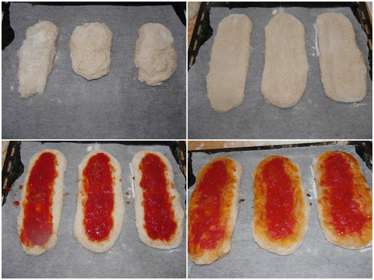 Le lingue di pizza sono semplicemente un modo diverso di servire quello che è forse il piatto più amato in tutto il mondo: sua maestà la pizza! Fondamentalmente, vi basterà preparare un qualsiasi tipo di pasta per pizza (ad esempio in questa occasione io ho optato per un impasto semi-integrale) e predisporre una farcitura a scelta, perché la differenza, in questo caso, la fa la forma. Invece della tipica pizza tonda da pizzeria o della comune teglia rettangolare di pizza fatta in casa, infatti, in questo caso le vostre pizze saranno allungate e ovali, a ricordare un po', appunto, delle lingue. Le lingue di pizza ormai si sono diffuse molto nei bar, al posto (o insieme) ai più classici tranci. Per questa volta mi sono tenuta sul basic e le ho condite come una margherita, ma, come vi ho già accennato, sono versatili proprio come ogni pizza che si rispetti, e potete condirle come più vi pare ;)