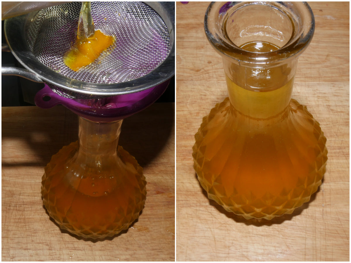 A questo punto potete filtrare (per eliminare le bucce), imbottigliare e far riposare il liquore per 1 mesetto.