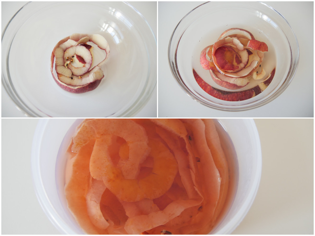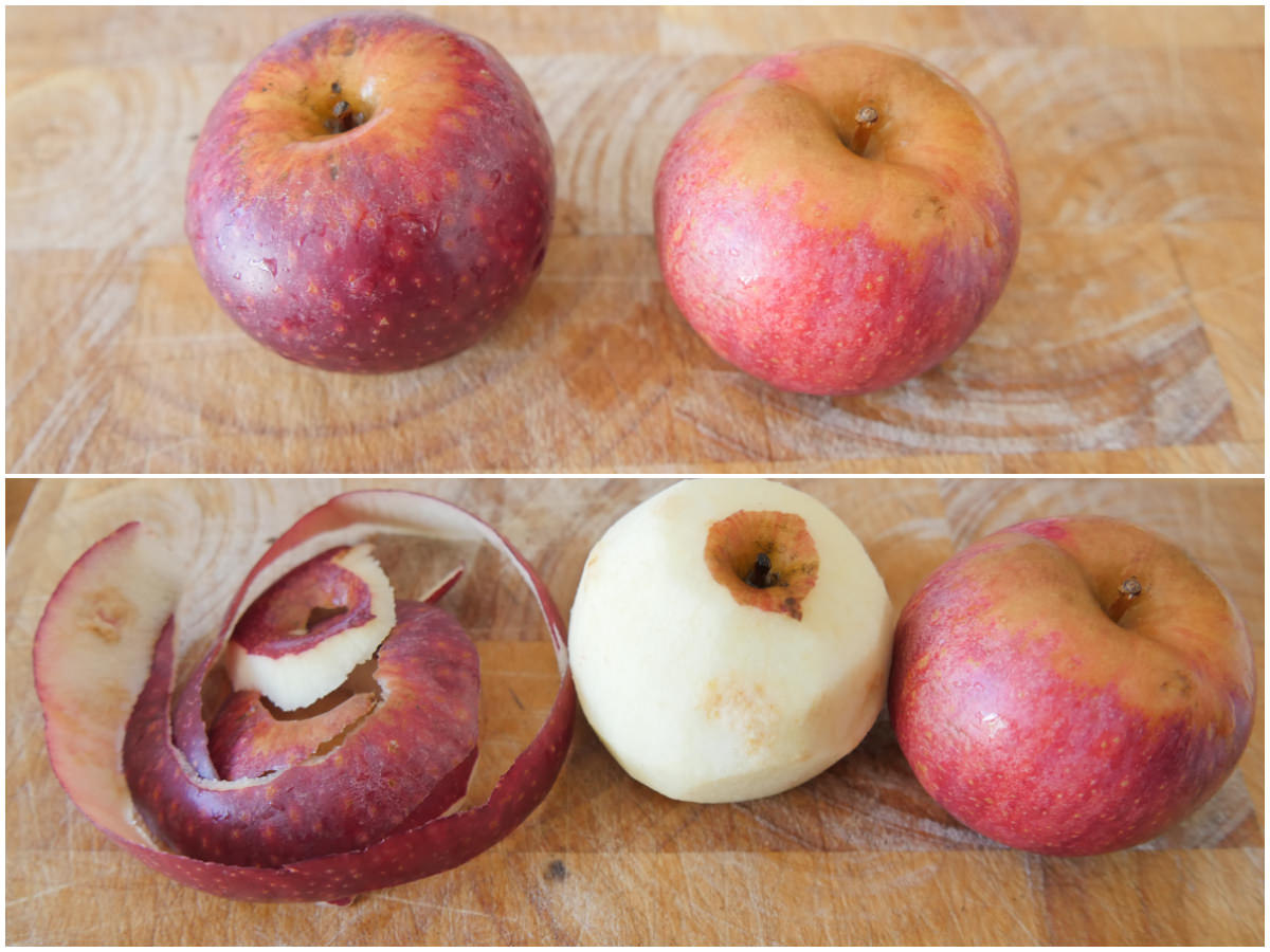 Innanzitutto lavate bene le mele con acqua corrente, asciugatele e ricavatene le bucce, cercando di non tirar via troppa polpa (quella potete usarla per altre ricette).