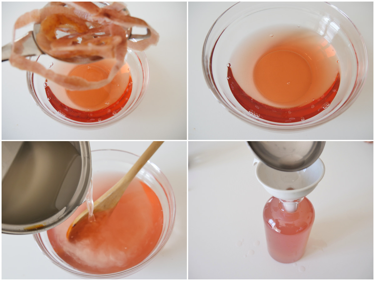 Mentre lo sciroppo si raffredda, filtrate per bene l'alcol e eliminate bucce e semi, quindi unite i due composti.