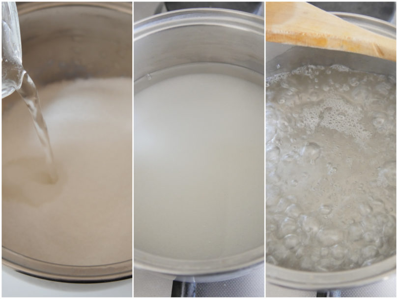 Passati i 15 giorni, preparate uno sciroppo portando a bollore l'acqua con dentro lo zucchero, quindi fatelo raffreddare.