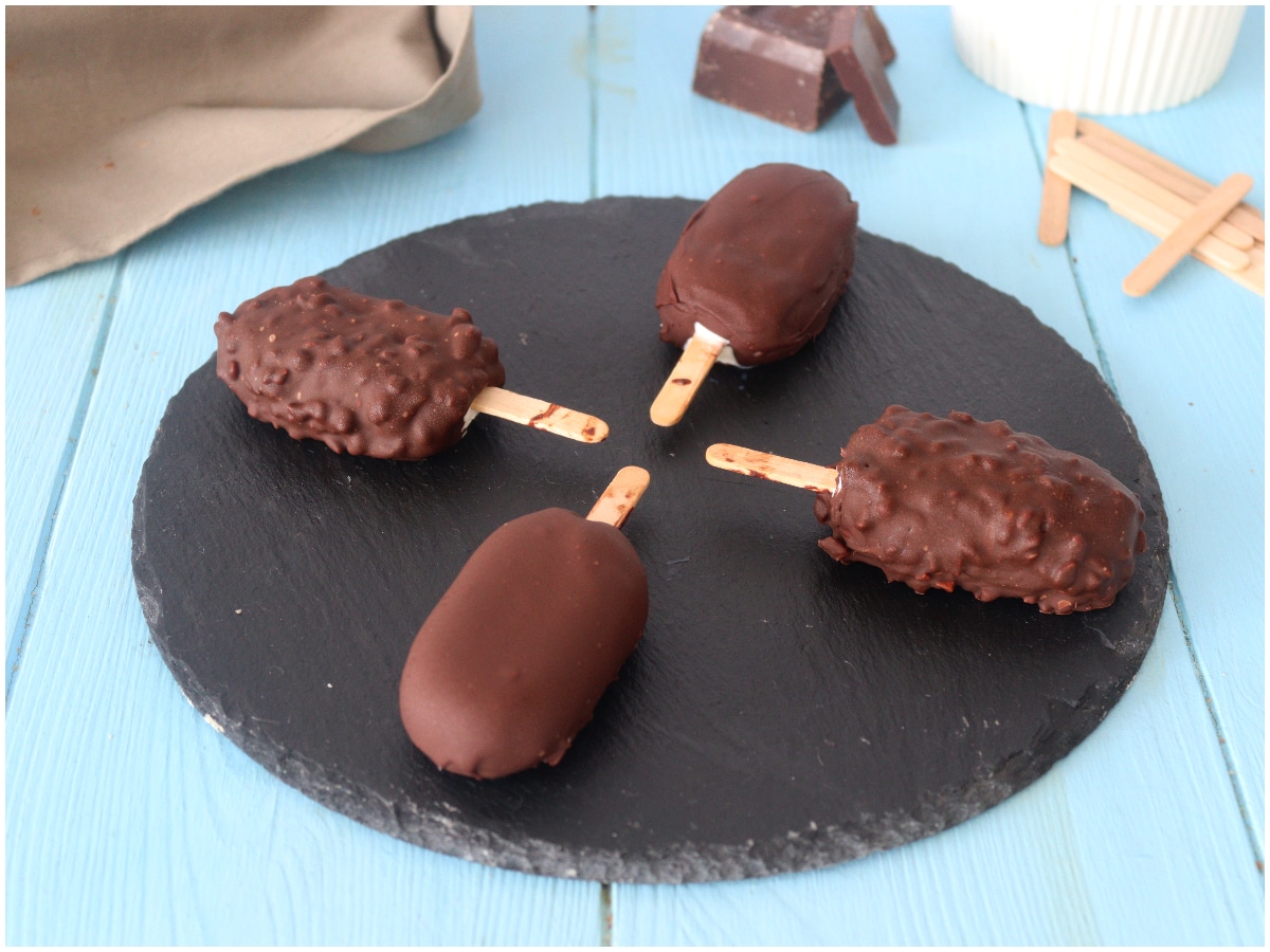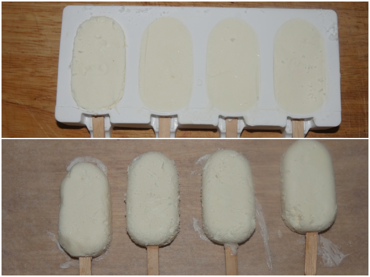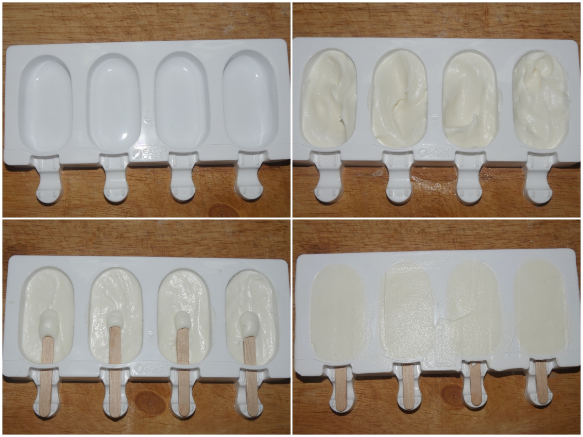 Tip: io ho usato degli stampini da gelato che trovate facilmente online o in negozi per dolci o casalinghi ben forniti. In alternativa potete usare dei semplicissimi bicchieri di carta, usando dei cucchiaini al posto degli stecchi da gelato: la forma sarà diversa, ma il sapore sempre delizioso.