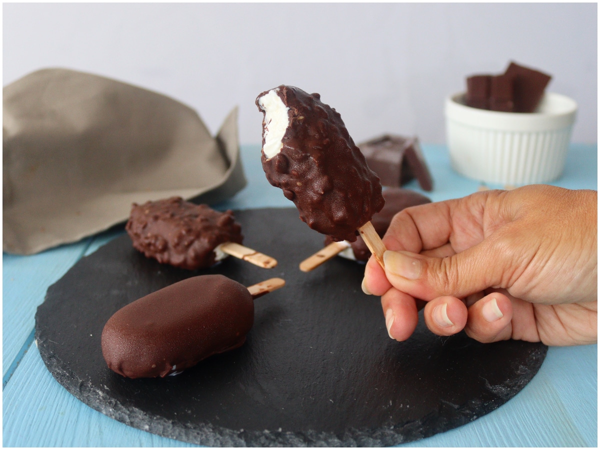 Il Magnum è un grande classico della gelateria confezionata italiana, nello specifico della Algida, anche se negli anni è stato imitato da tanti altri brand, ovviamente con nomi diversi... Ma tutti noi sappiamo che il vero Magnum è unico e inimitabile! ... Eppure la curiosità di provare a farlo in casa non riuscivo proprio a farmela passare, per cui eccomi qui, a proporvi il risultato del mio Magnum fatto in casa, naturalmente non la livello dell'originale, che è assolutamente inarrivabile, ma comunque molto buono e soprattutto personalizzabile: potete infatti crearlo al gusto che più vi piace, provando a imitare quelli delle edizioni limitate uscite negli anni o creandone di nuove tutte vostre! Io per questa volta sono andata sul semplice, facendo la versione classica e quella alle mandorle ;)