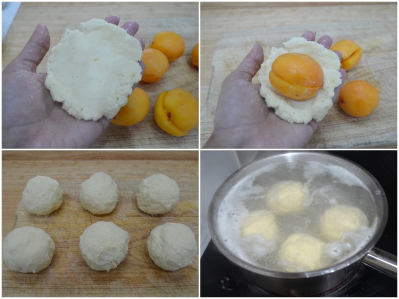 Chiudete ogni pezzo di impasto intorno a 1 albicocca, lavorandolo per formare una pallina.