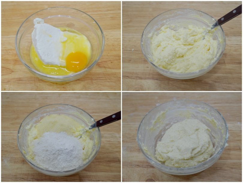 Lavorate il burro leggermente ammorbidito con ricotta e uovo fino ad ottenere una crema.
