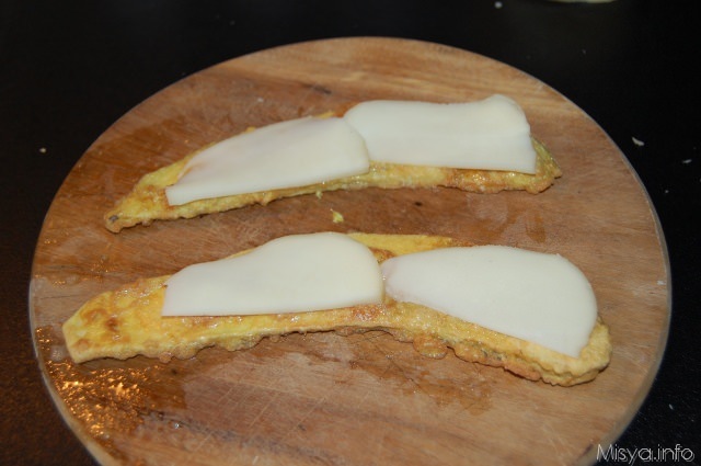 Sgocciolare le melanzane dall'olio e stendere su uno strato una strisciolina di sottiletta o di scamorza