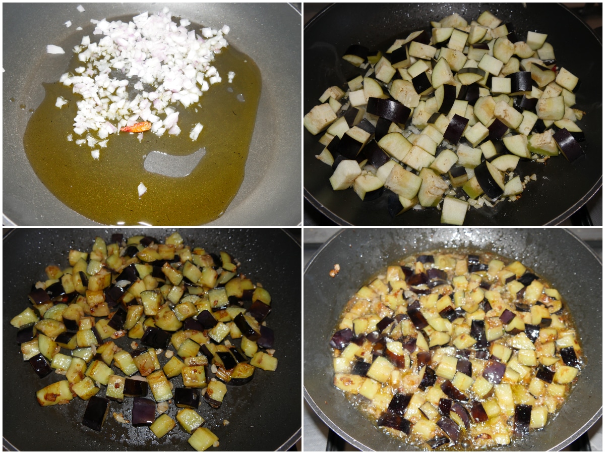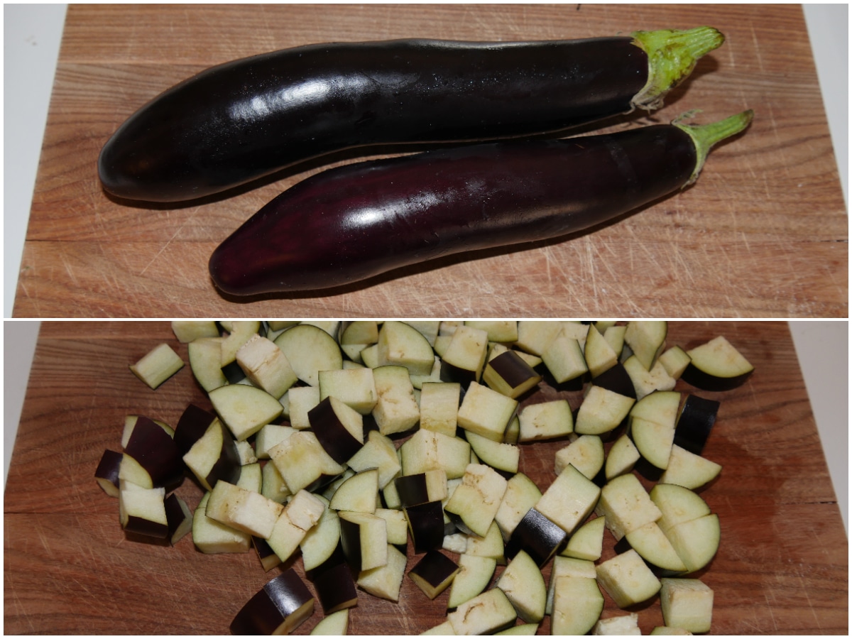Mondate le melanzane, lavatele e tagliatele a cubetti.