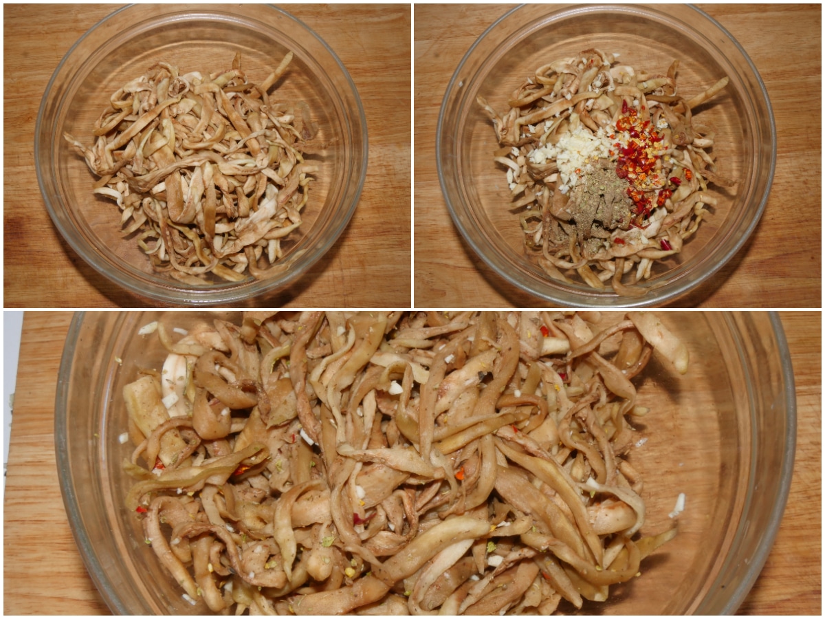 Riprendete le melanzane e conditele con gli aromi (aglio, peperoncino, origano) tritati.