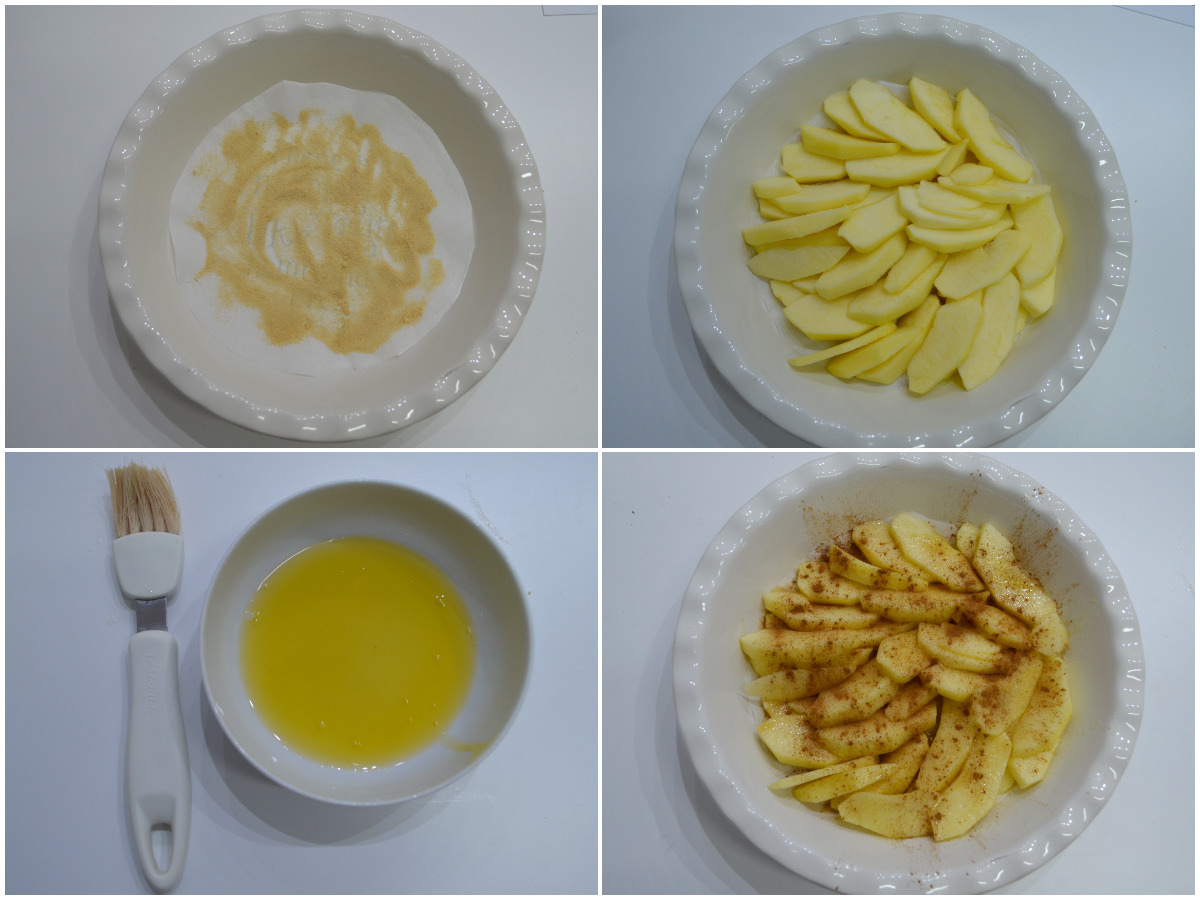 Disponete le fettine di mele nella pirofila, quindi spennellate con un mix di miele e succo di limone.