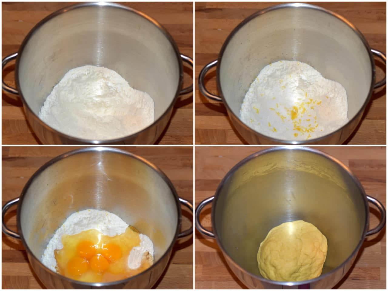 mettete tutti gli ingredienti nella planetaria, o nella ciotola, e lavorate fino a formare una palla liscia e omogenea