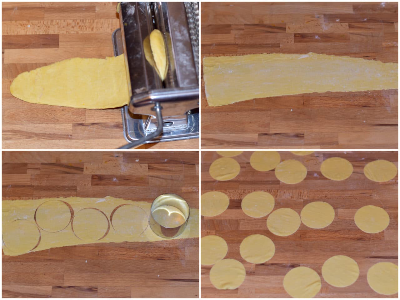 stendete l’impasto allo spessore di 1 mm e con un coppa pasta rotondo fate tanti dischetti