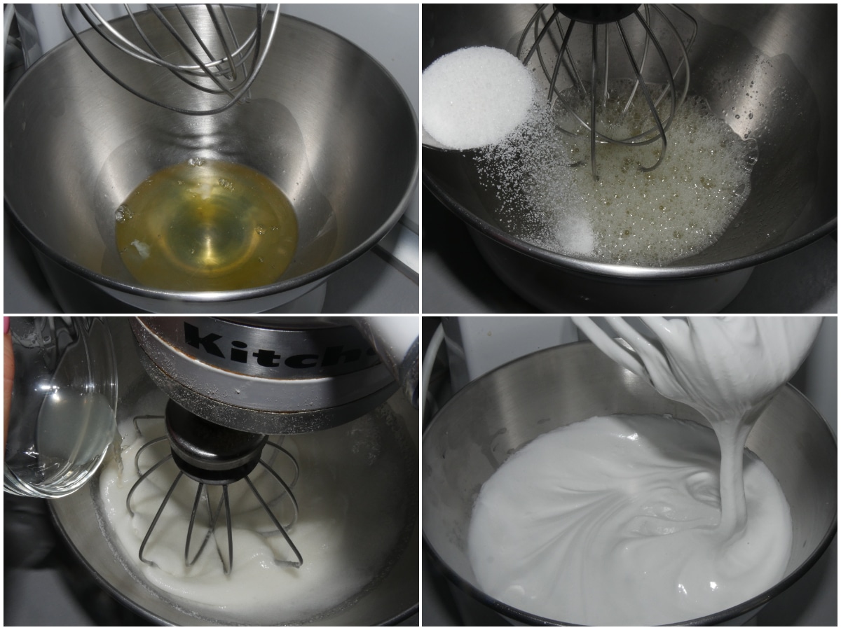 Preparate la meringa: iniziate a montare gli albumi; quando inizieranno a montarsi incorporate prima lo zucchero e poi il succo di limone.