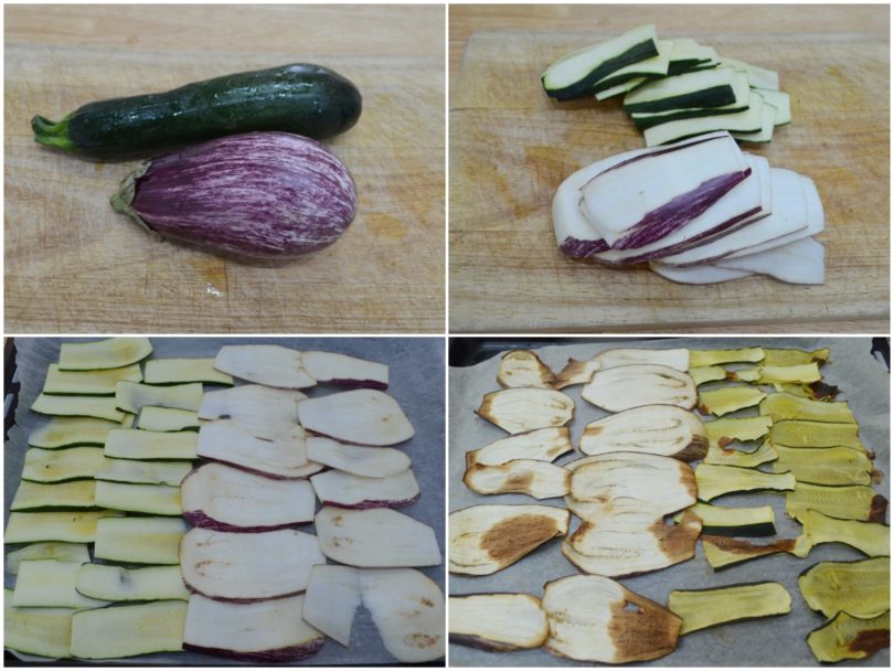 Innanzitutto mondate le verdure, tagliatele a fettine abbastanza sottili, conditele con sale e olio e cuocetele per 10-15 minuti a 180°C, forno ventilato già caldo.
