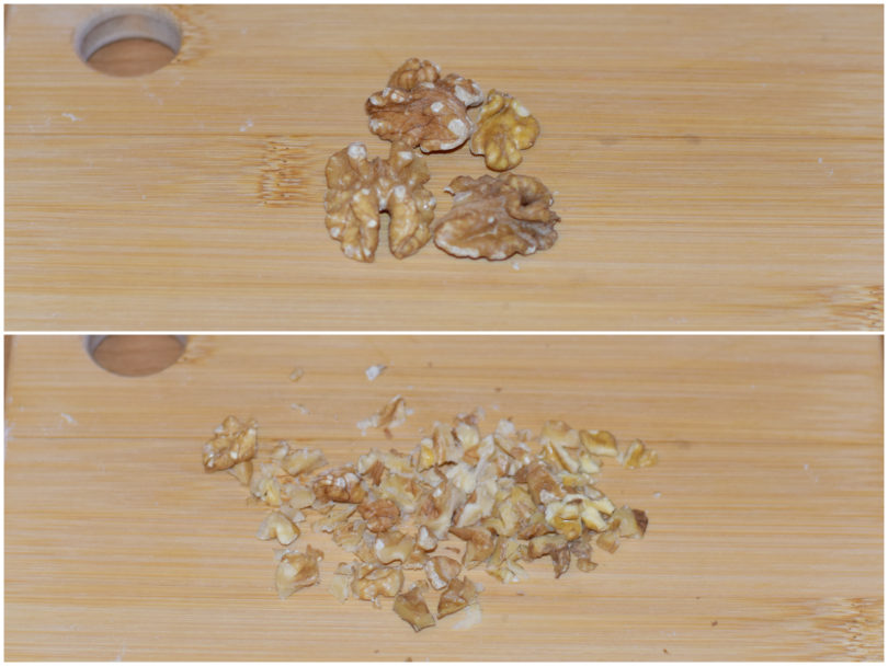 Sgusciate le noci e tritate grossolanamente i gherigli.