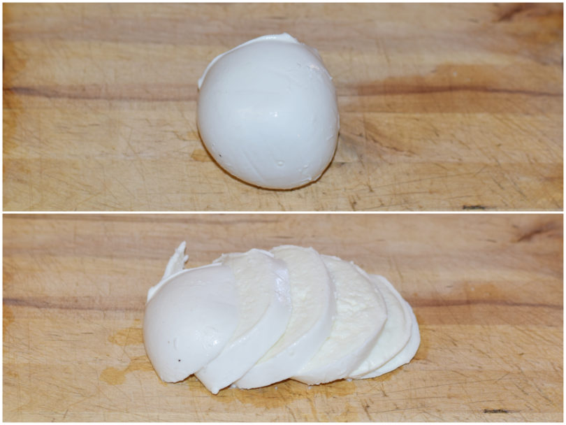 Tagliate a fette la mozzarella.