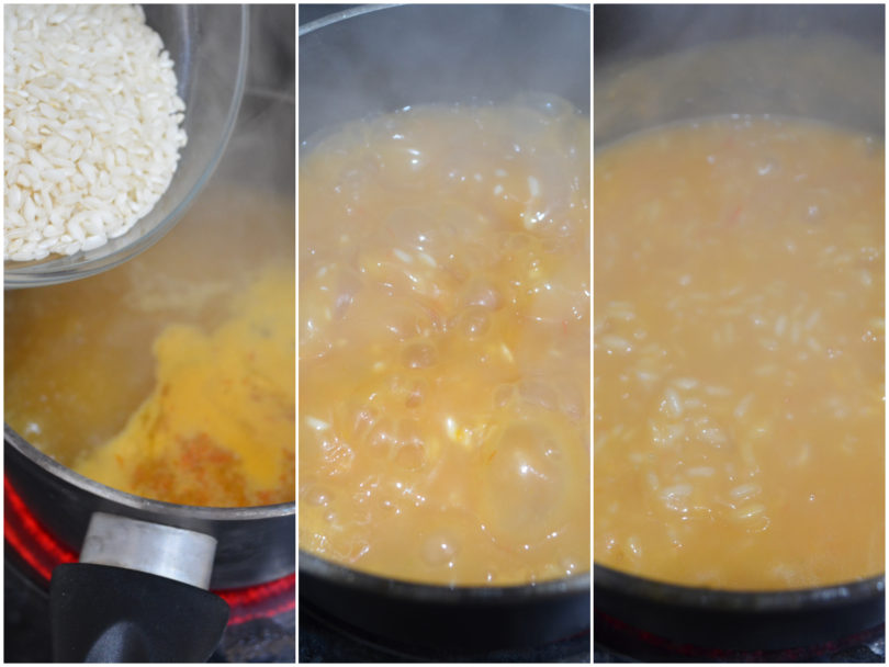 Calate il riso nella minestra e portate a cottura.
