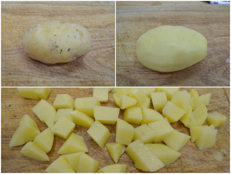 Pelate la patata, tagliatela a tocchetti e aggiungetela nella pentola.