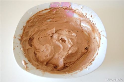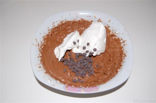 Mescolare la crema al cioccolato e formaggio delicatamente con un cucchiaio di legno