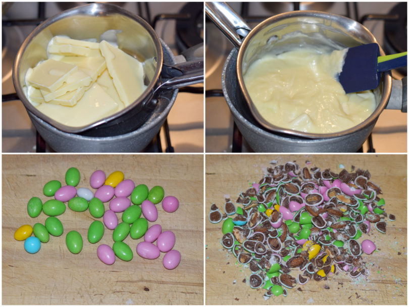 Tagliate gli ovetti di cioccolato a metà o in pezzi.