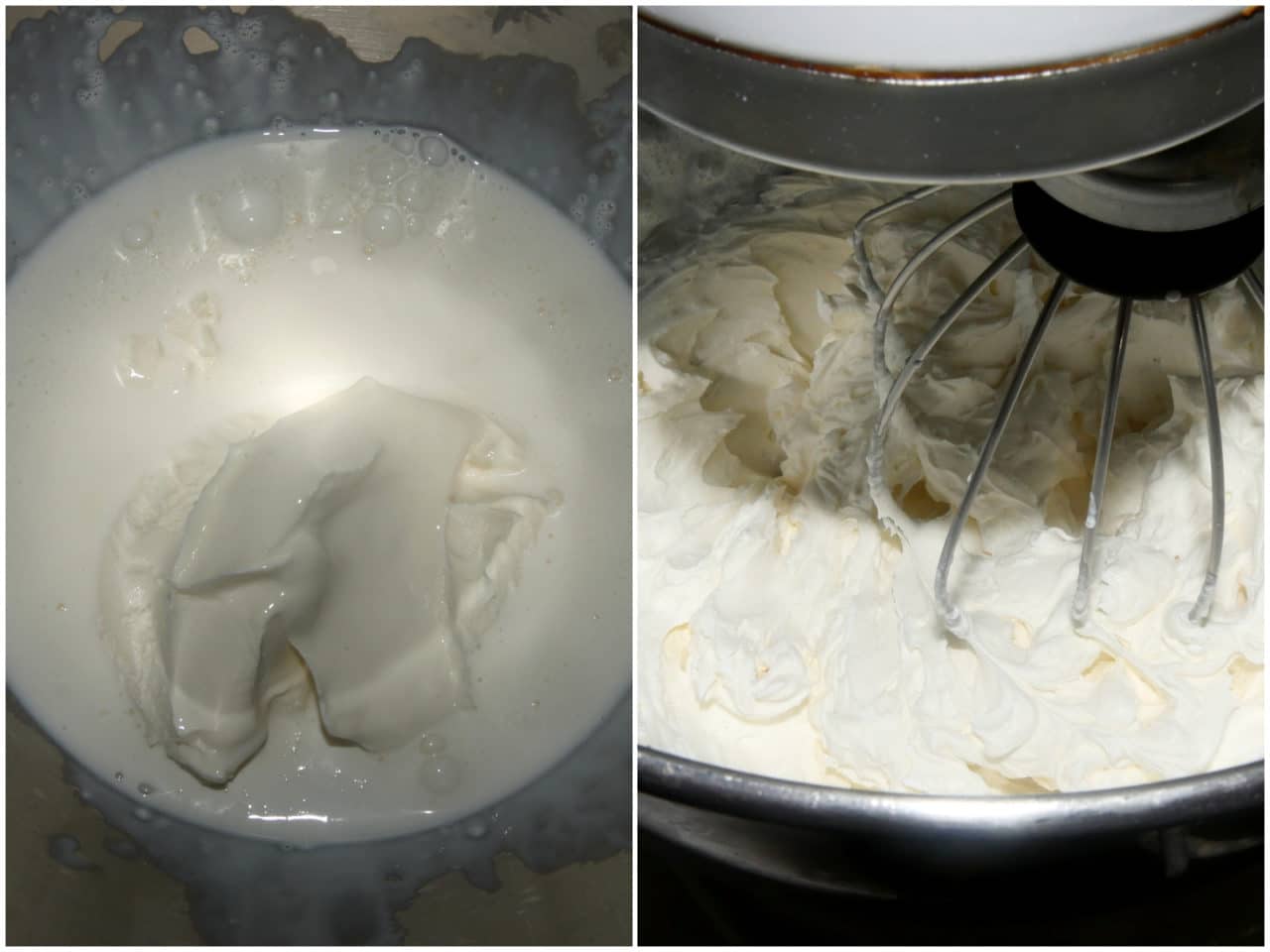 Montate il mascarpone con la panna ben fredda di frigo.Amalgamate bene i due ingredienti in modo da ottenere una crema liscia ed omogenea.