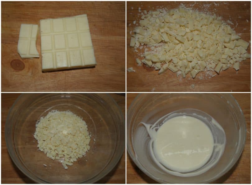 Intanto tritate grossolanamente il cioccolato e scioglietelo in microonde (o a bagnomaria).