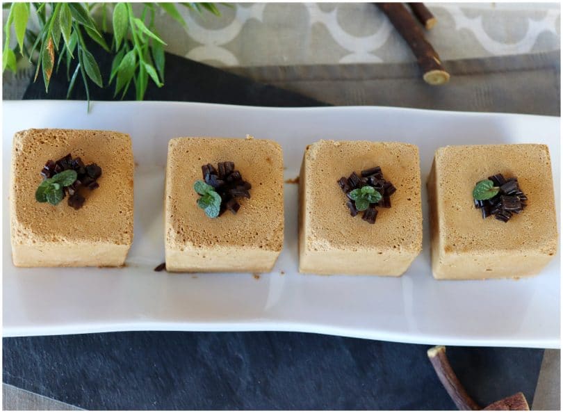 La mousse alla liquirizia è pronta, toglietela con cautela dalle formine prima di servirla.