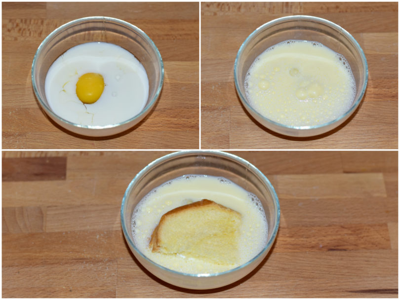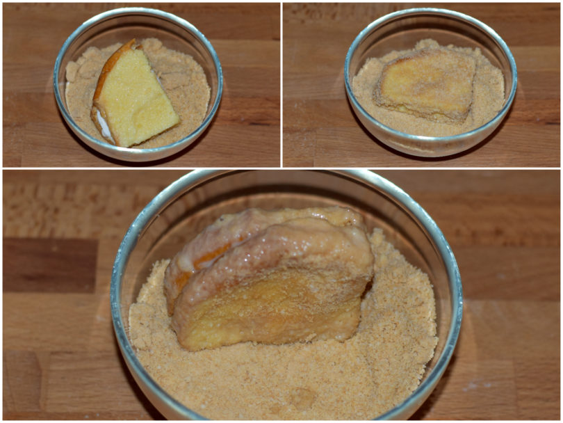 Sbattete l'uovo con il latte e passate ogni paninetto prima nel latte, velocemente, e poi nel trito di biscotti, impanandolo bene.