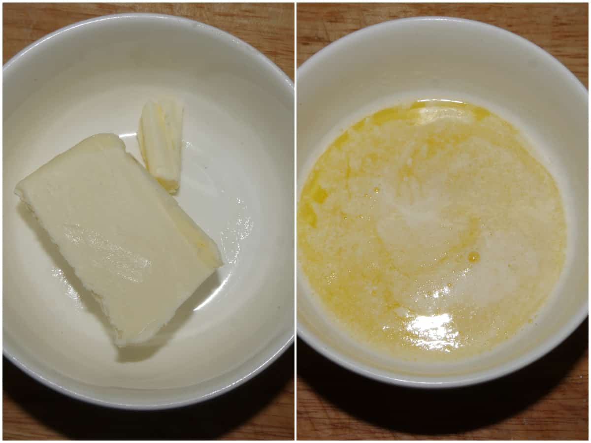 nel frattempo sciogliete il burro (nel microonde o a bagnomaria) e lasciatelo intiepidire.