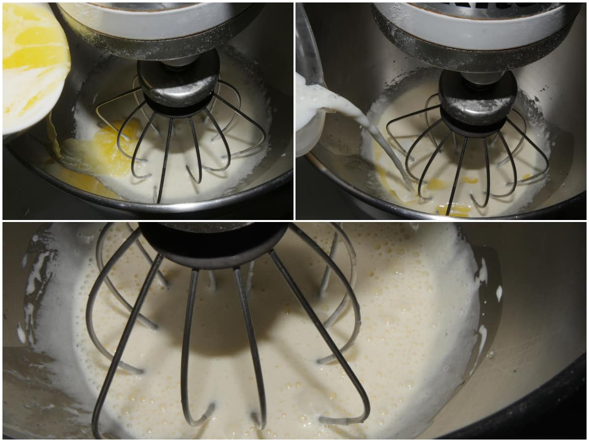 Infine aggiungete anche farina e lievito setacciati, succo e buccia di limone e limoncello (o altro succo di limone).