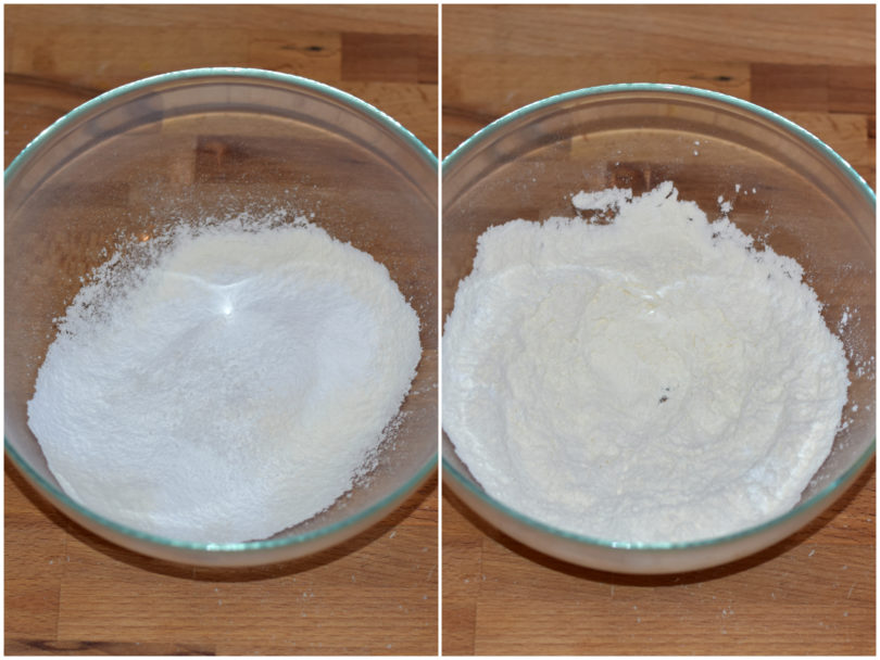 Setacciate farina e lievito in una ciotola, unite anche parmigiano e sale e mescolate.