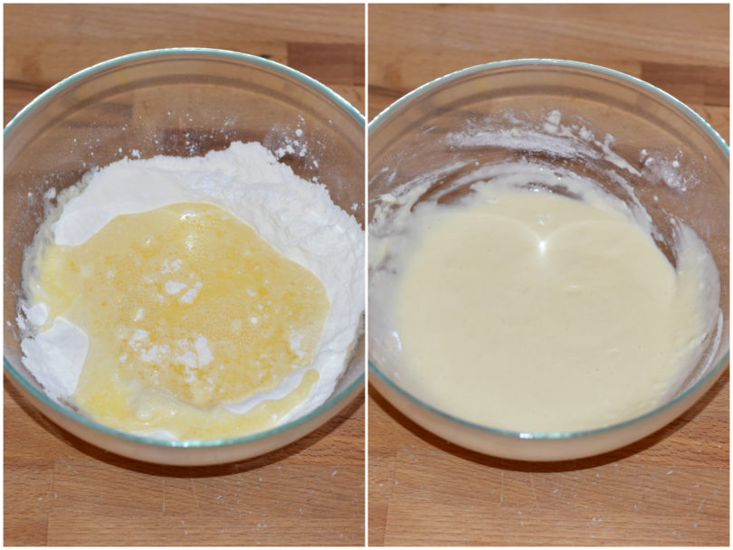 Versate gli ingredienti liquidi su quelli solidi e amalgamate.