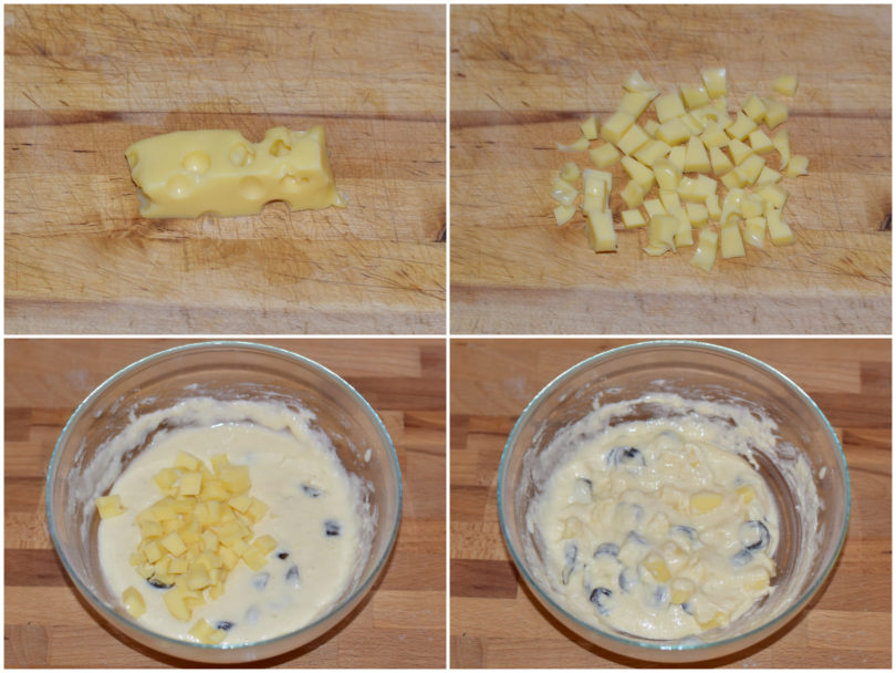 Tagliate il formaggio a cubettini e incorporate anche questi.