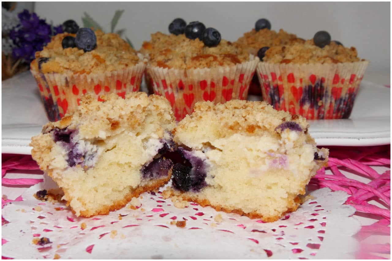Direi che i muffin cheese blueberry non sono proprio i muffin che vi potreste aspettare. Diversamente dai classici muffin ai mirtilli, infatti, questi hanno intanto un cuore leggermente cremoso al formaggio e poi una deliziosa crosticina croccante come topping, costituita da uno streusel, ovvero una sorta di frolla che viene sbriciolata in cima a un dolce appunto con questo scopo, un po' come in una sbriciolata. Il risultato (che ve lo dico a fare) è di un buono inimmaginabile e in più, nonostante possano sembrare elaborati, sono anche sorprendentemente facili da fare... Dovrete solo adattarvi a farli raffreddare dopo la cottura, per non ustionarvi, ma a parte questo nel giro di un'oretta avrete tutto pronto ;)