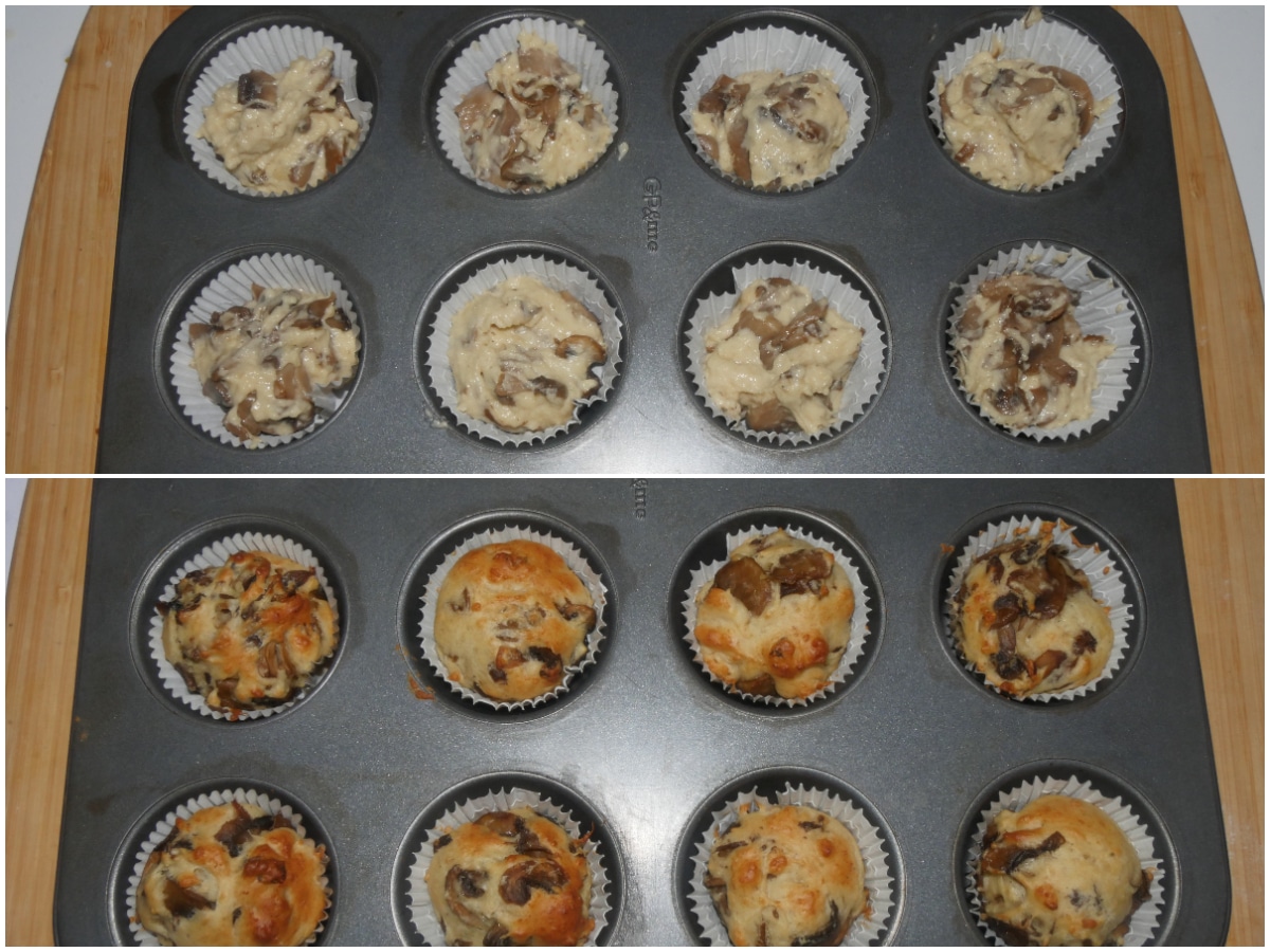 Versare il composto dei muffin salati ai funghi negli stampini da muffin precedentemente imburrati ed infarinati oppure utilizzando dei pirottini di carta.