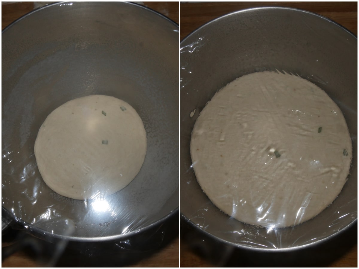 Lavorate fino ad ottenere un panetto omogeneo, quindi lasciate lievitare per almeno 1 ora o fino al raddoppio in una ciotola unta con l'olio restante.