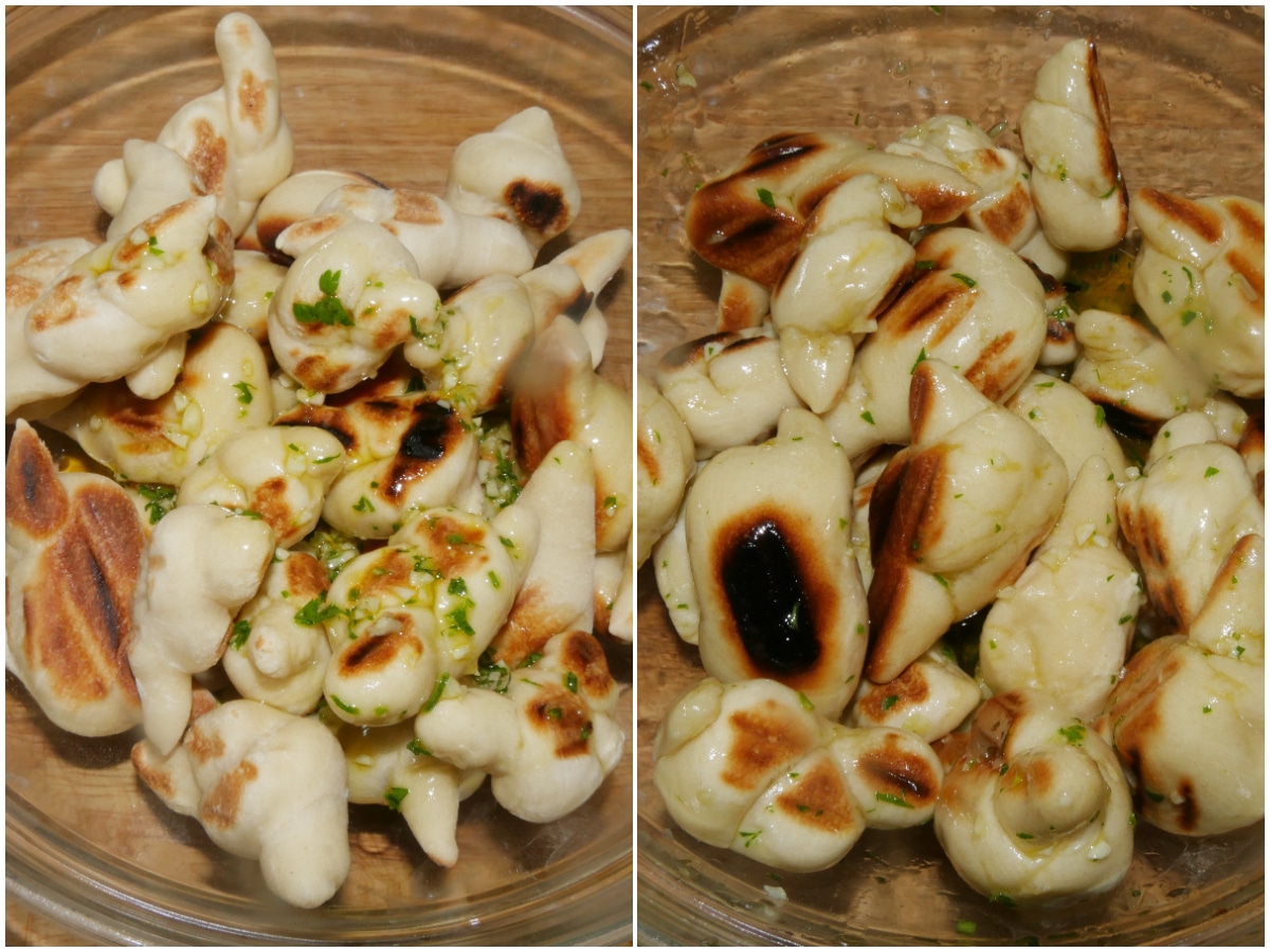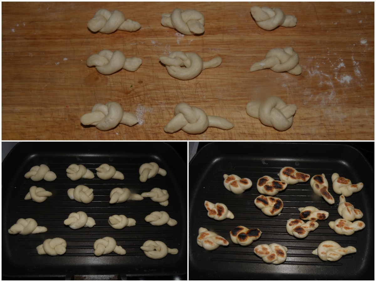 I nodini di pane all'aglio sono una ricetta delle sorelle Simili. La particolarità maggiore, oltre all'inconfondibile aroma (vampiri e non amanti dell'aglio si terranno di sicuro lontani da voi e persino dalla vostra casa!) consiste nella cottura, che invece di avvenire in forno viene effettuata sul fornello, in una bistecchiera o padella antiaderente.