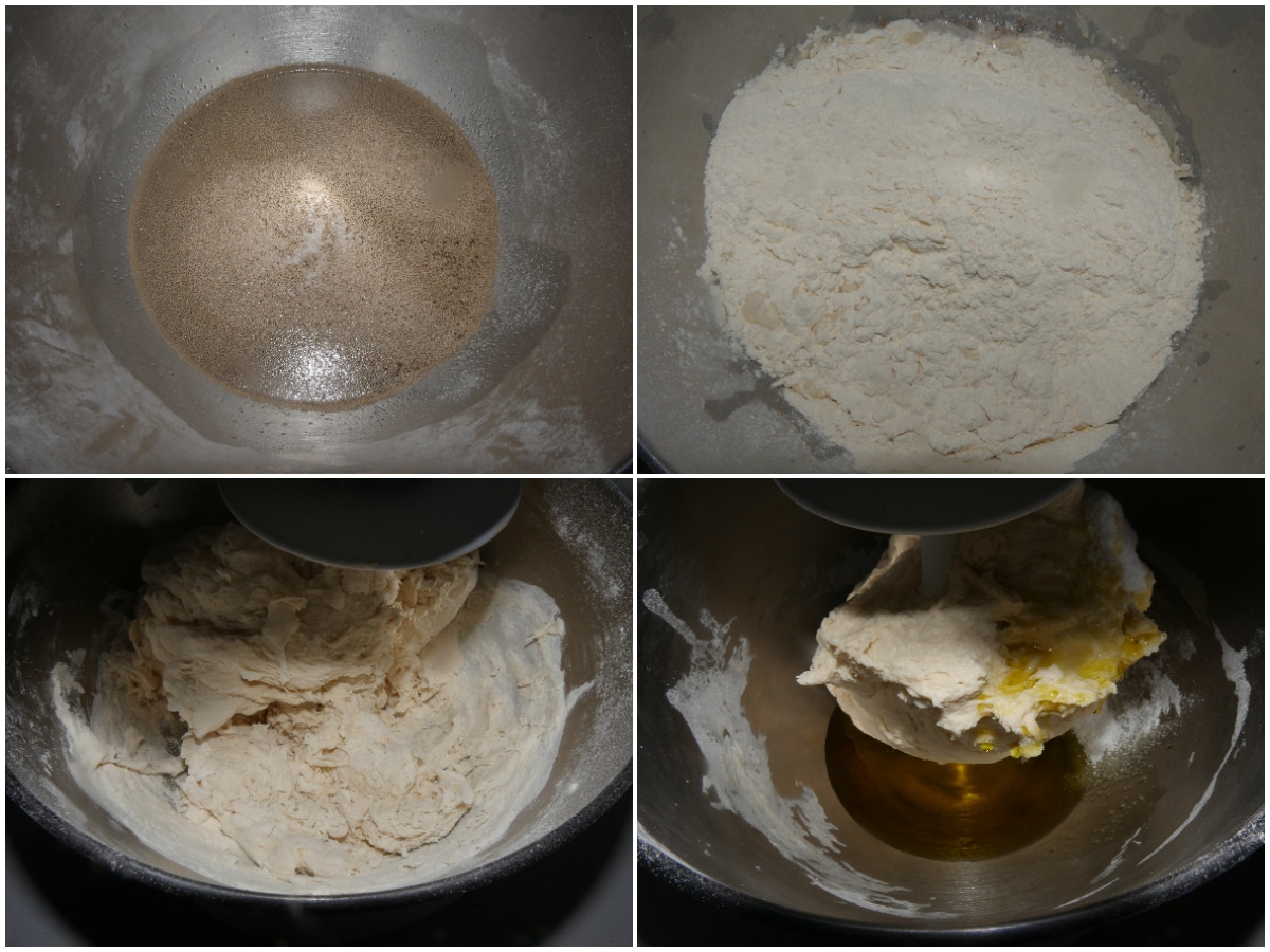 Sciogliete il lievito nell'acqua tiepida, incorporate prima la farina solo dopo sale e olio.