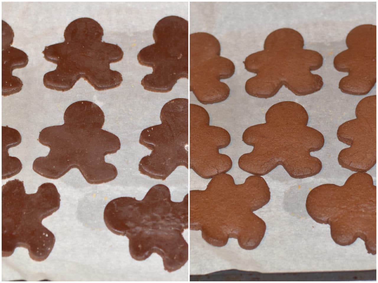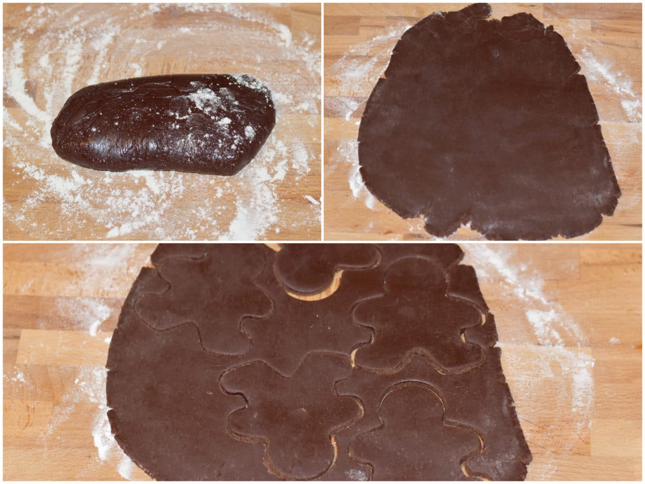 Passato il tempo del riposo riprendete il panetto, stendetelo sul piano di lavoro leggermente infarinato in una sfoglia abbastanza sottile (circa 0,5 cm) e ricavate gli omini con una formina.