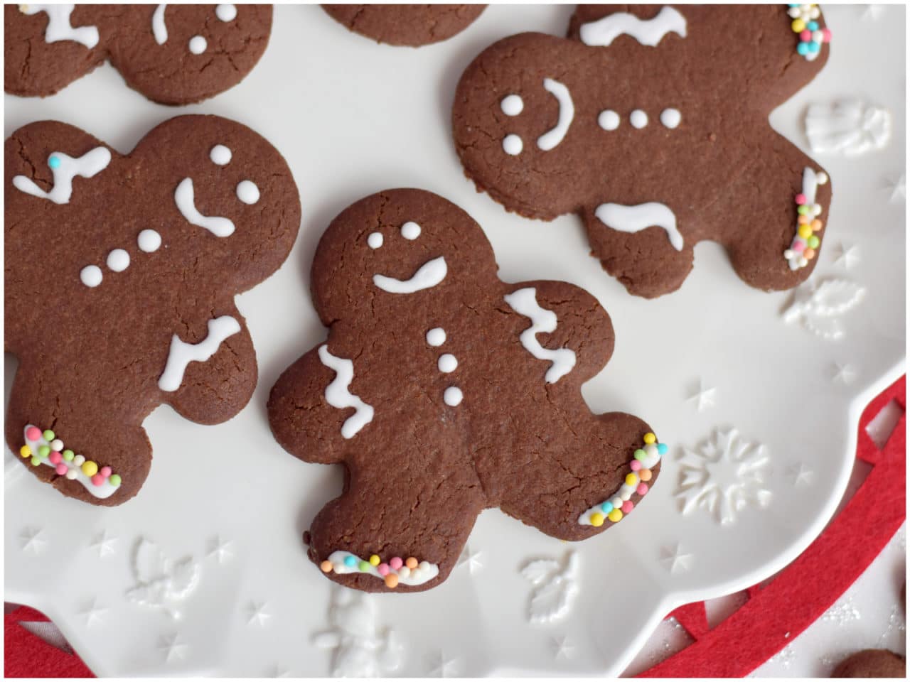Quando una delle mie collaboratrici mi ha fatto notare che non avevo ancora mai provato a fare gli omini pan di zenzero al cacao, l'idea mi è piaciuta talmente tanto che non ho perso tempo: mi sono subito messa alla ricerca di una ricetta che mi convincesse e in men che non si dica mi sono ritrovata a farli. Guà solo a sentirli nominare me ne sono innamorata, ma quando poi ho visto queste piccole delizie sapevo che sarebbero stati irresistibili. Se vi piacciono i classici gingerbread men e amate i biscotti al cioccolato, questa è decisamente la ricetta che fa per voi!
