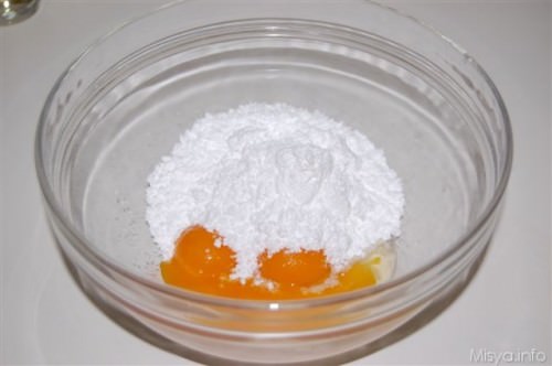 A parte, montare i tuorli con lo zucchero a velo fino a renderli spumosi.