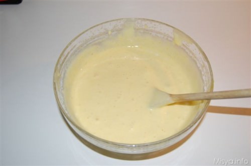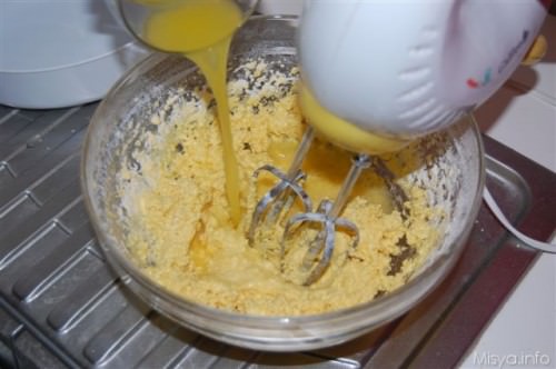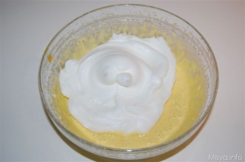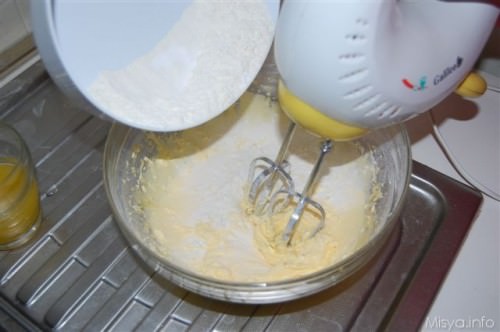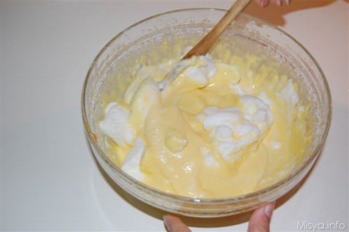 Aggiungere quindi la farina ai tuorli e zucchero continuando a mescolare.