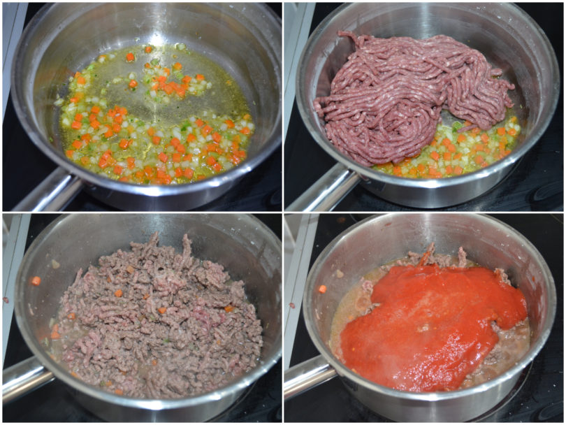 Unitele al condimento: sugo, besciamella, mozzarella e metà del parmigiano.