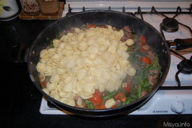 Procedimento per preparare le orecchiette con salsiccia e rucola