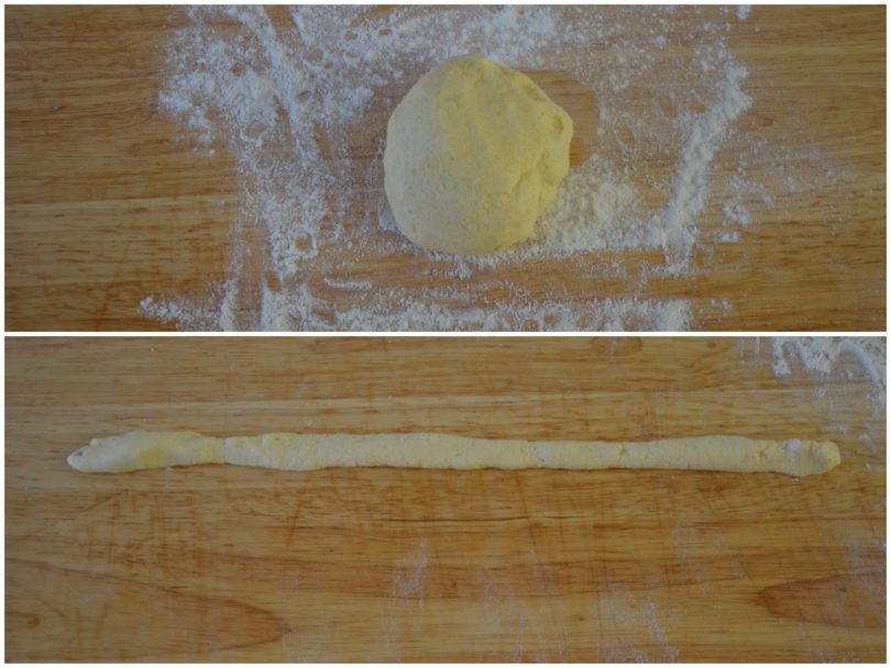 Con l'aiuto di un coltello. ricavate tanti pezzettini lunghi 1 cm, quindi prendete 1 pezzetto per volta e trascinatelo verso di voi sul piano di lavoro infarinato, quindi richiudete l'impasto su se stesso per dare la forma caratteristica.
