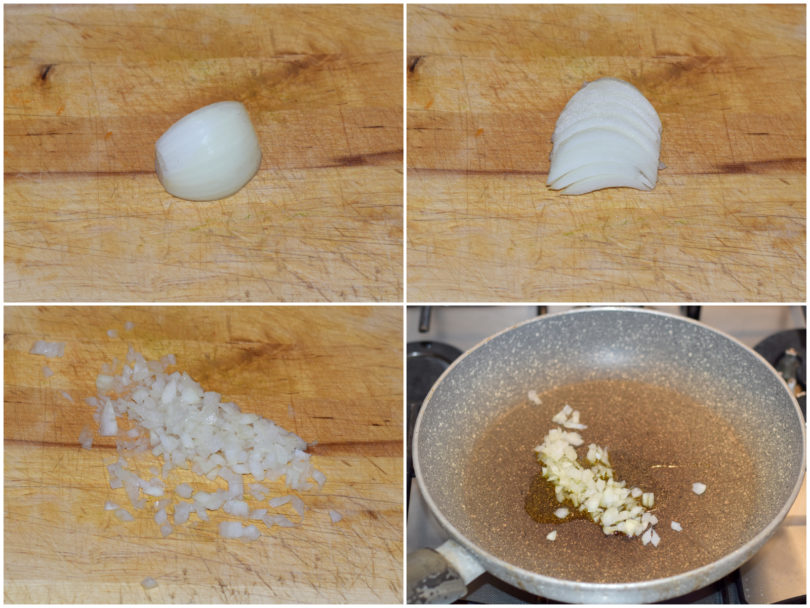 Mondate anche la cipolla, tritatela e fatela appassire con un po' di olio in una casseruola antiaderente.
