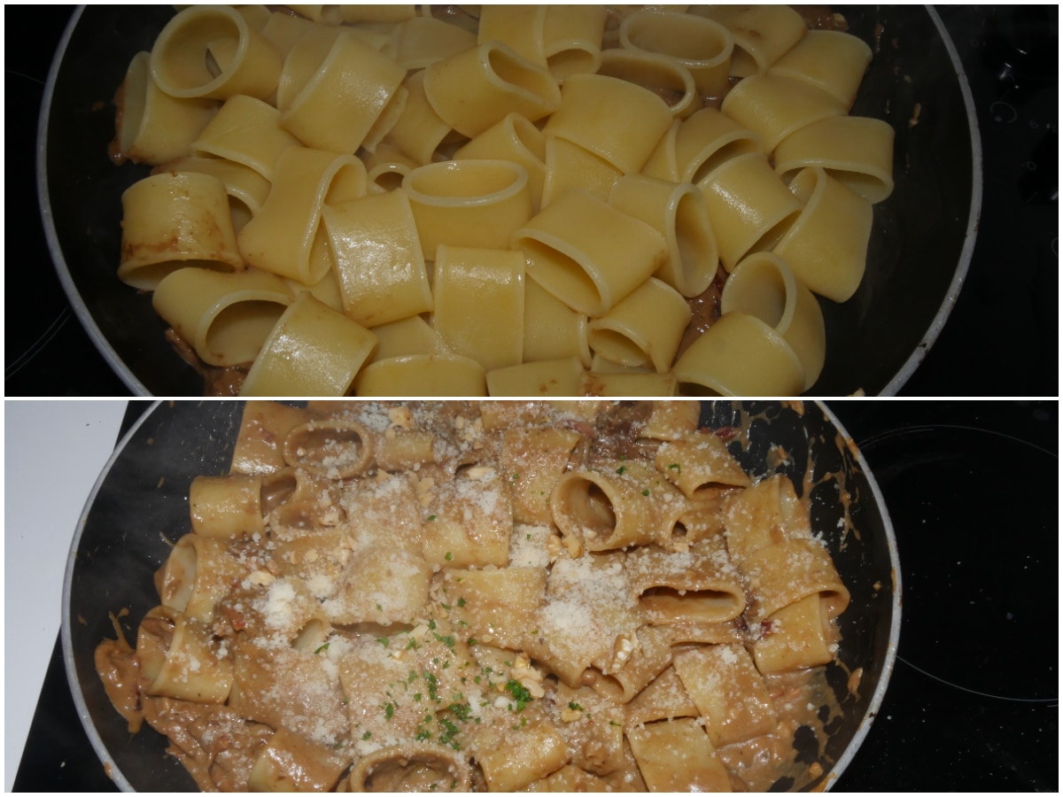 I paccheri in crema di funghi noci e speck sono pronti, non vi resta che servirli.