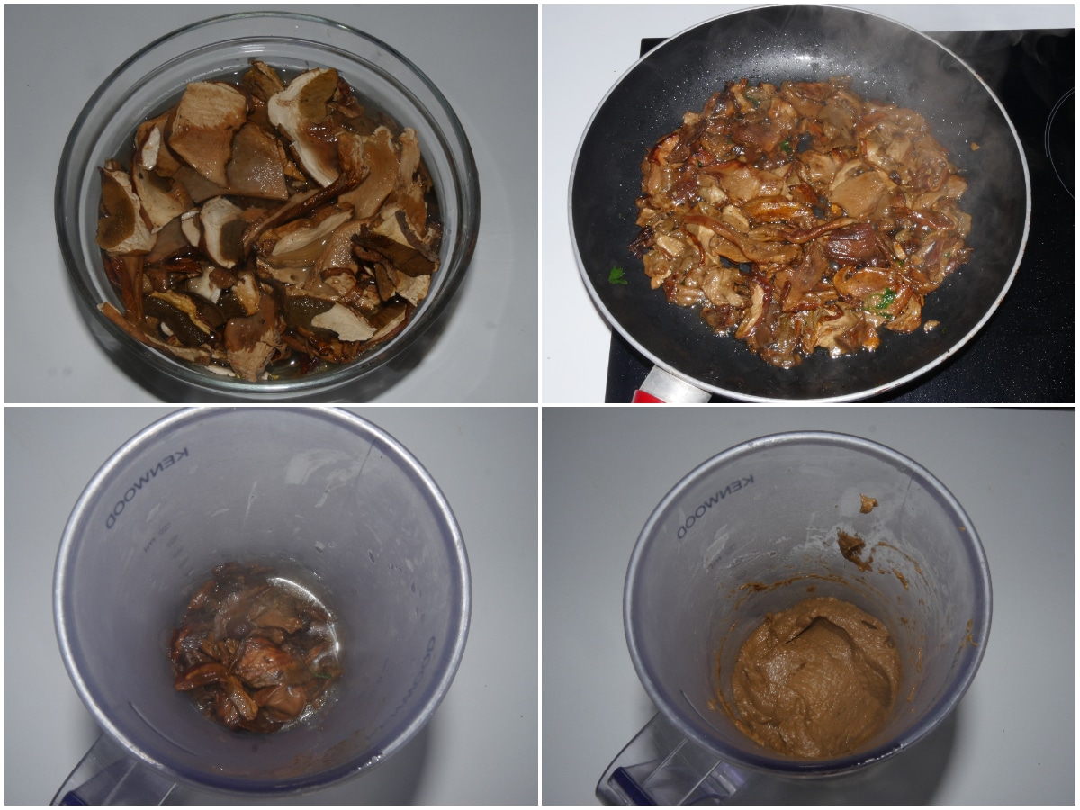 Innanzitutto mettete a bagno i funghi in acqua calda per almeno 10 minuti, per farli rinvenire.