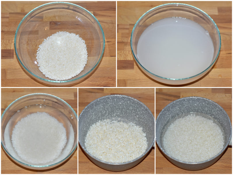 Sciacquate il riso con acqua fresca cambiandola più volte, finché non diventerà bella limpida, in modo da eliminare tutto l'amido.