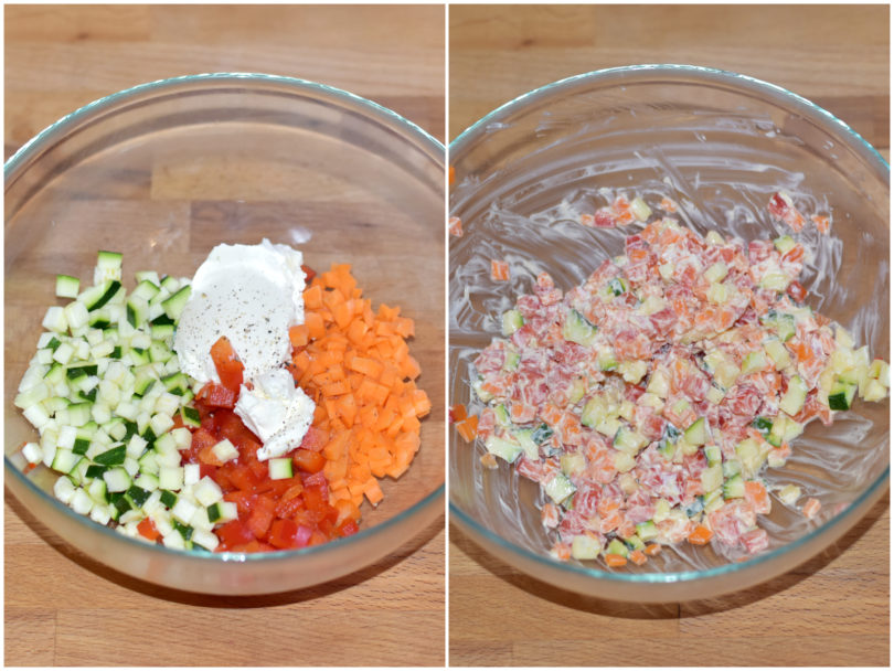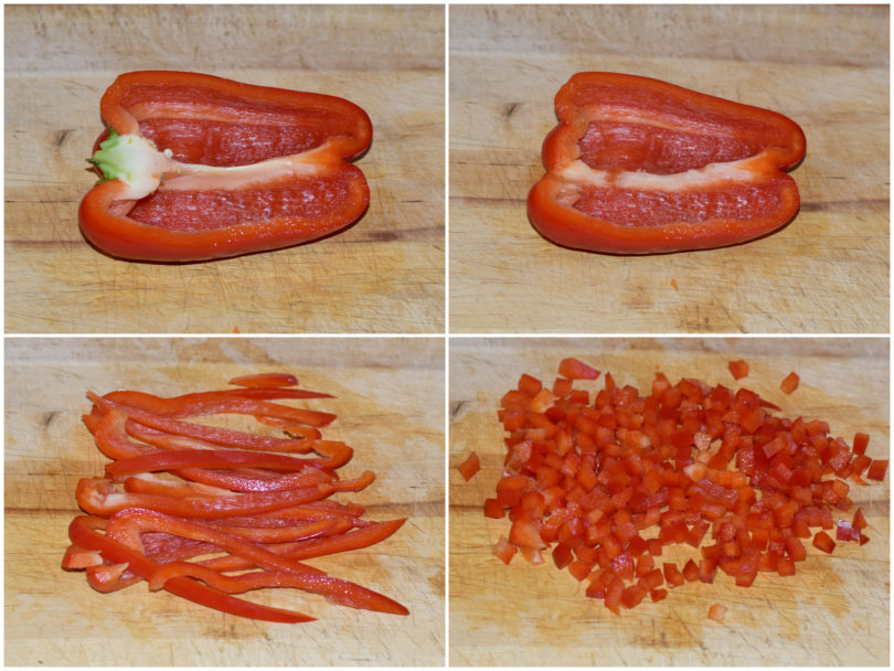 Nel frattempo preparate le verdure: mondatele tutte e tagliatele a pezzetti molto piccoli, come vedete in foto.