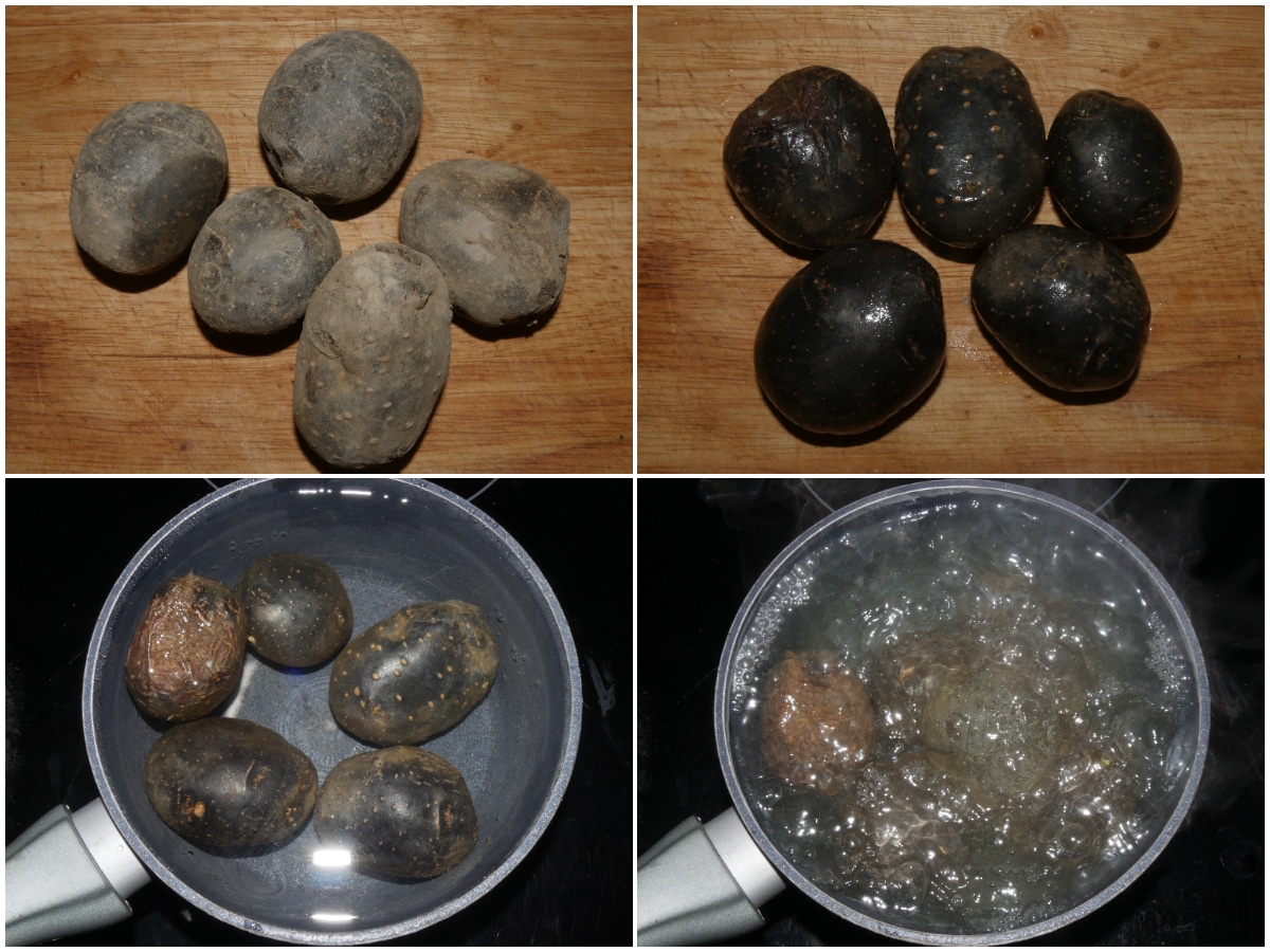 Innanzitutto lavate bene le patate, mettetela in una pentola con abbondante acqua fredda e cuocete a fiamma alta, contando circa 35-40 minuti dall'ebollizione.